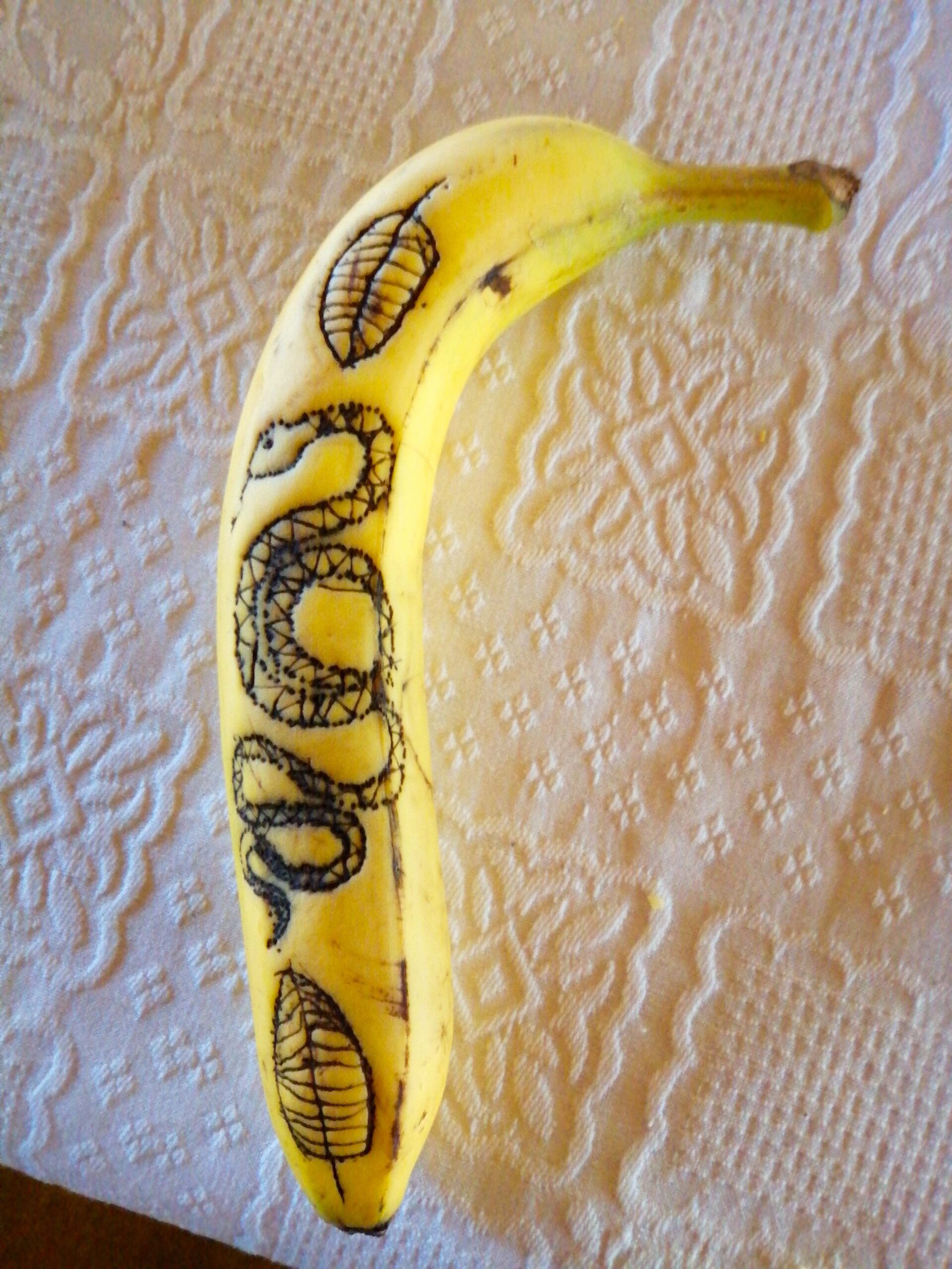 Excellente idée de La prof en Plastique avec ce tutoriel qui explique très bien comment tatouer une banane.