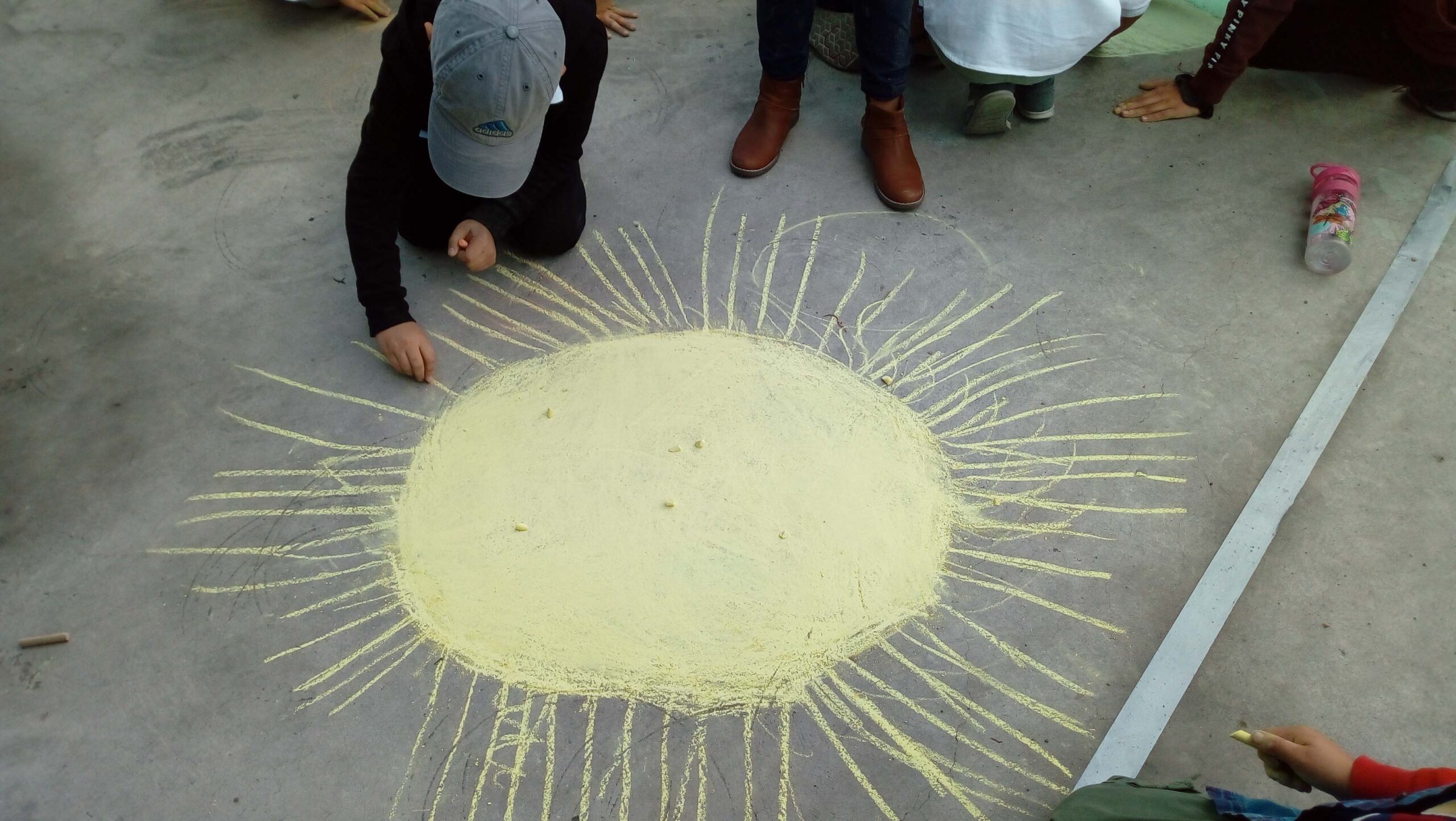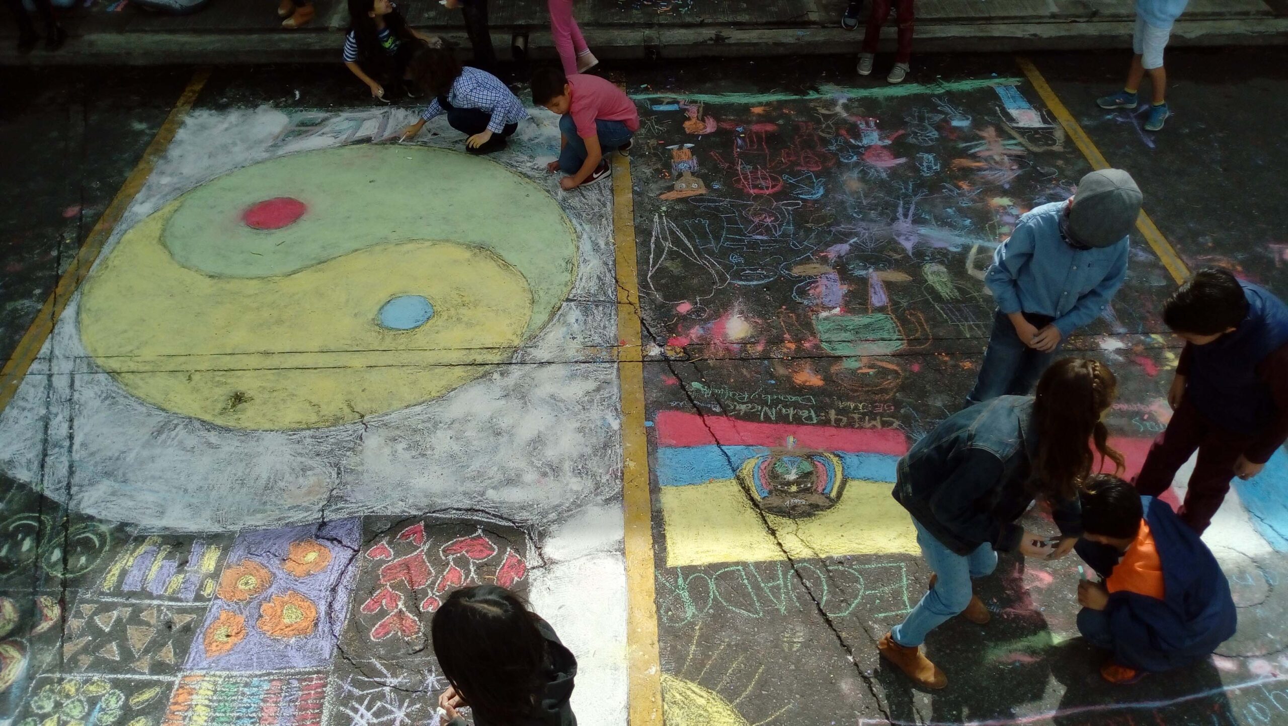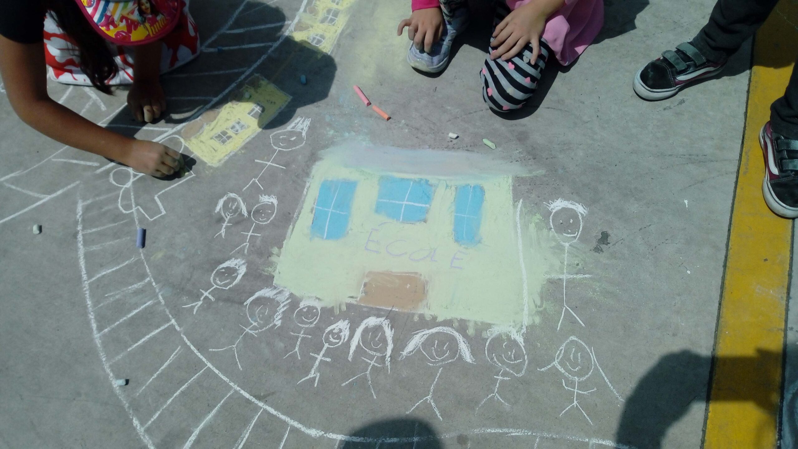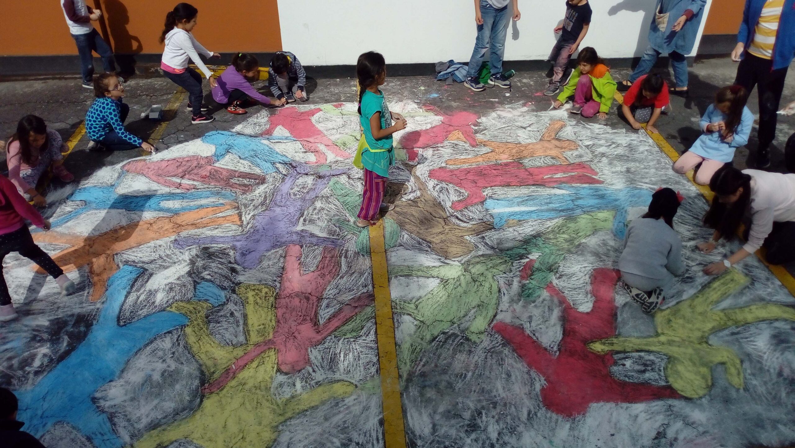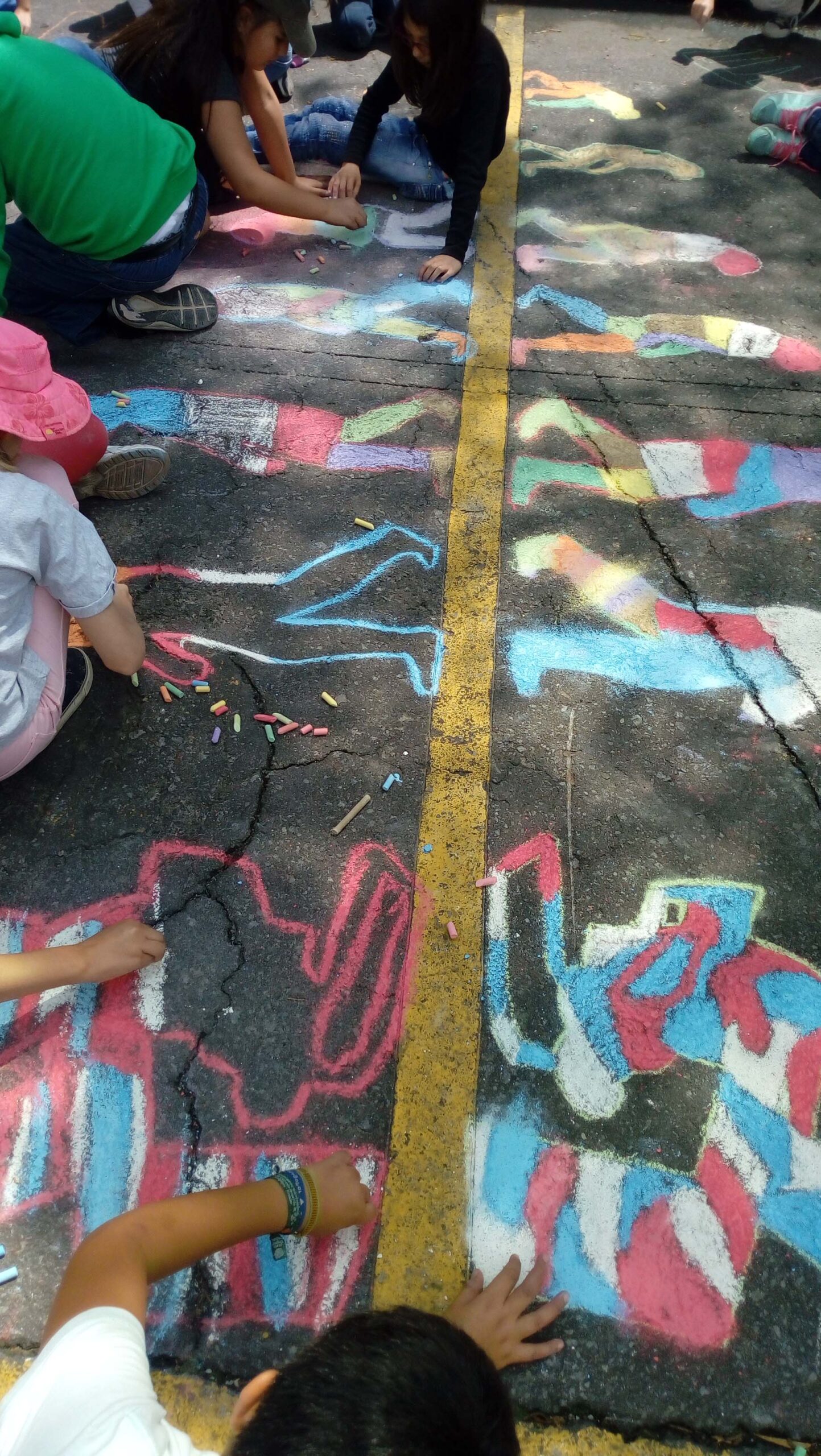 Sujet pour le primaire, tous niveaux. Ce projet d’établissement destiné aux classes de primaire a été initié par Luigi Brusa, référent culturel, inspiré par certaines villes colombiennes où, pour la fin de l’année civile, les habitants couvrent les rues d’immenses dessins à la craie. J’ai seulement participé à l’organisation mais c’est une idée qui mérite le détour.