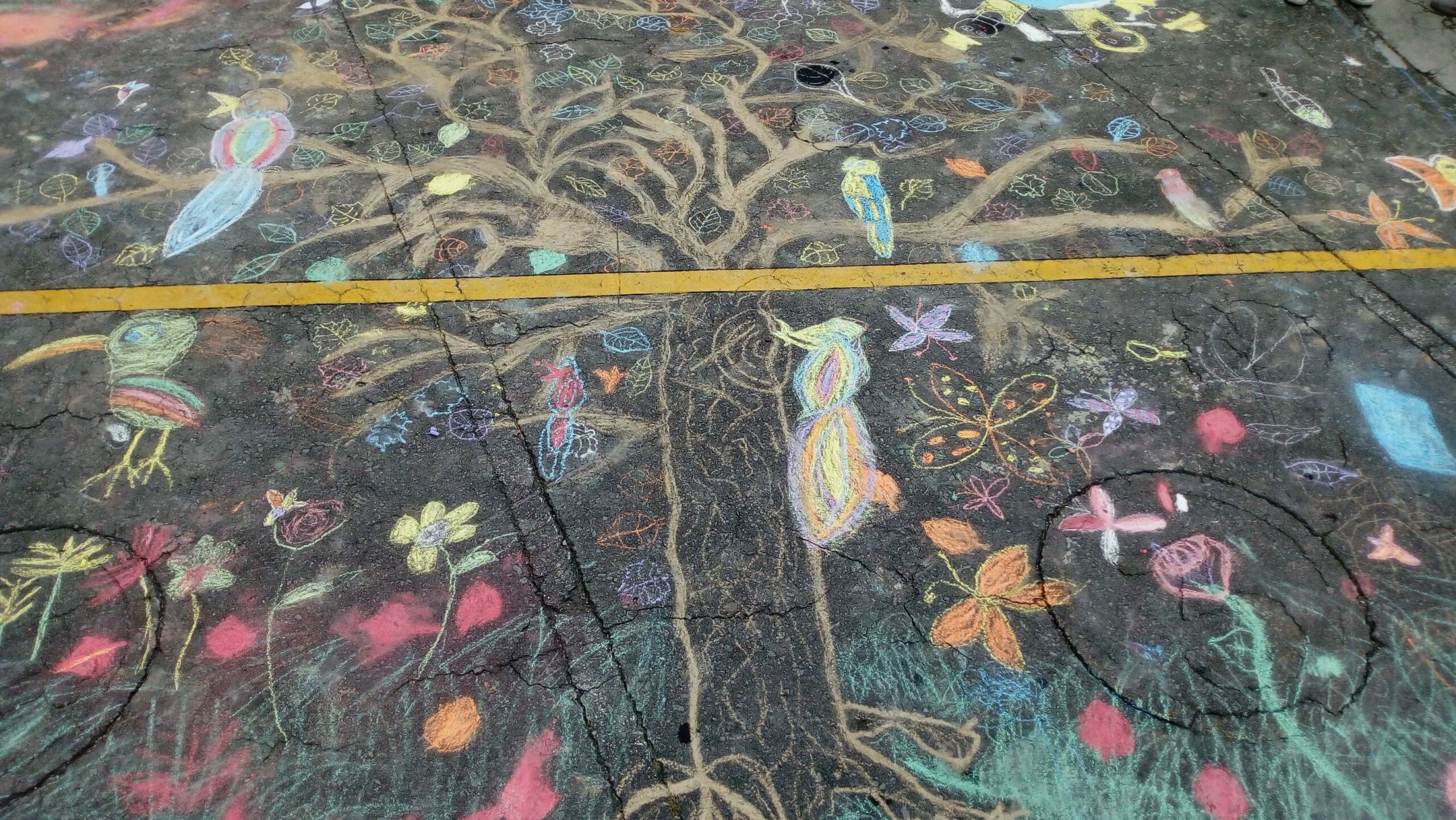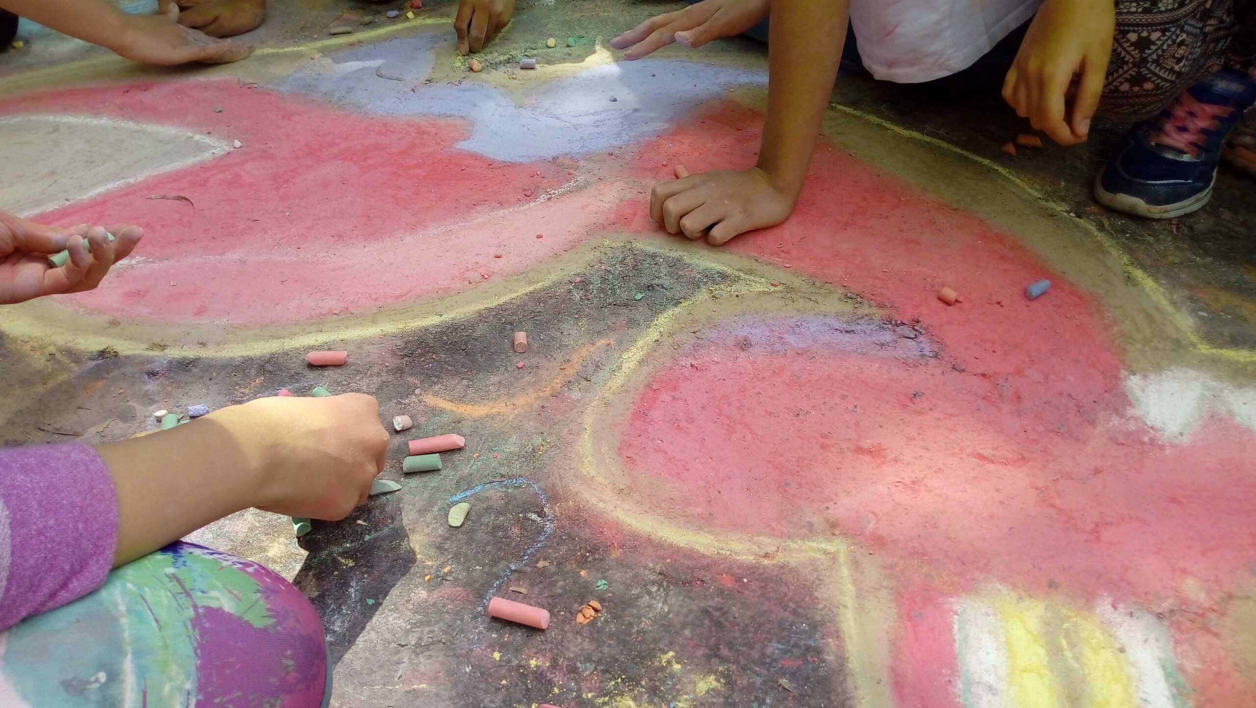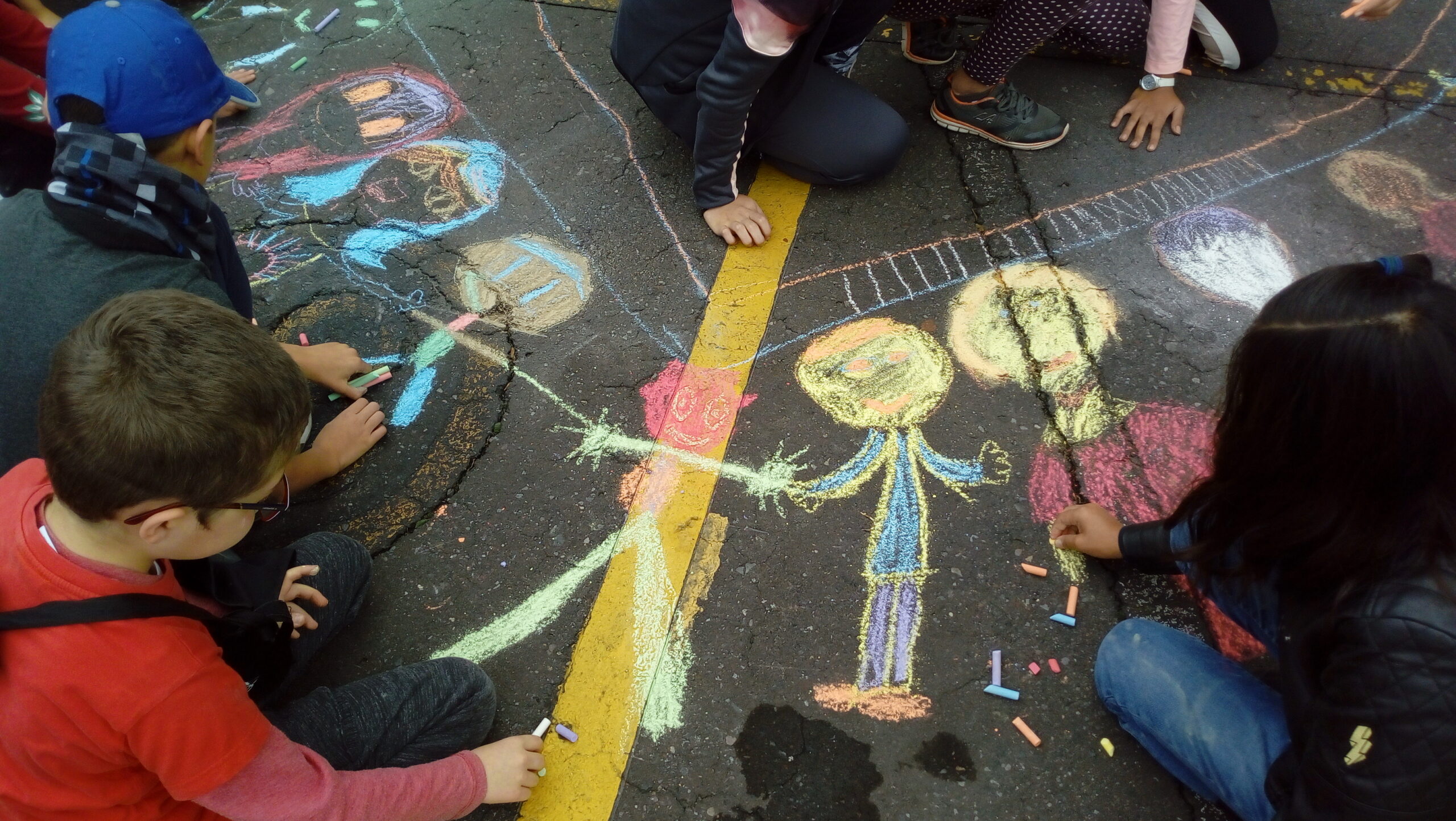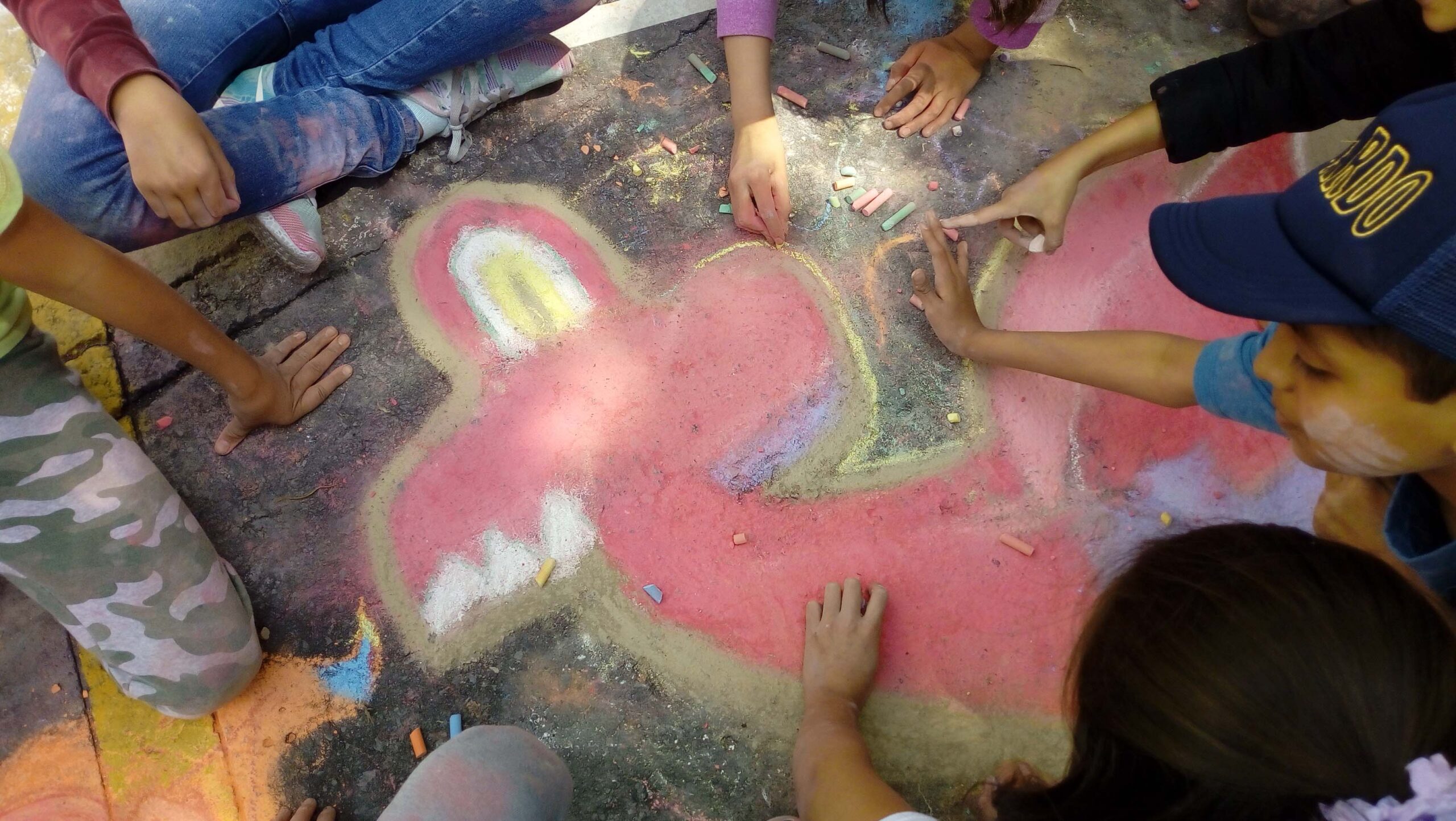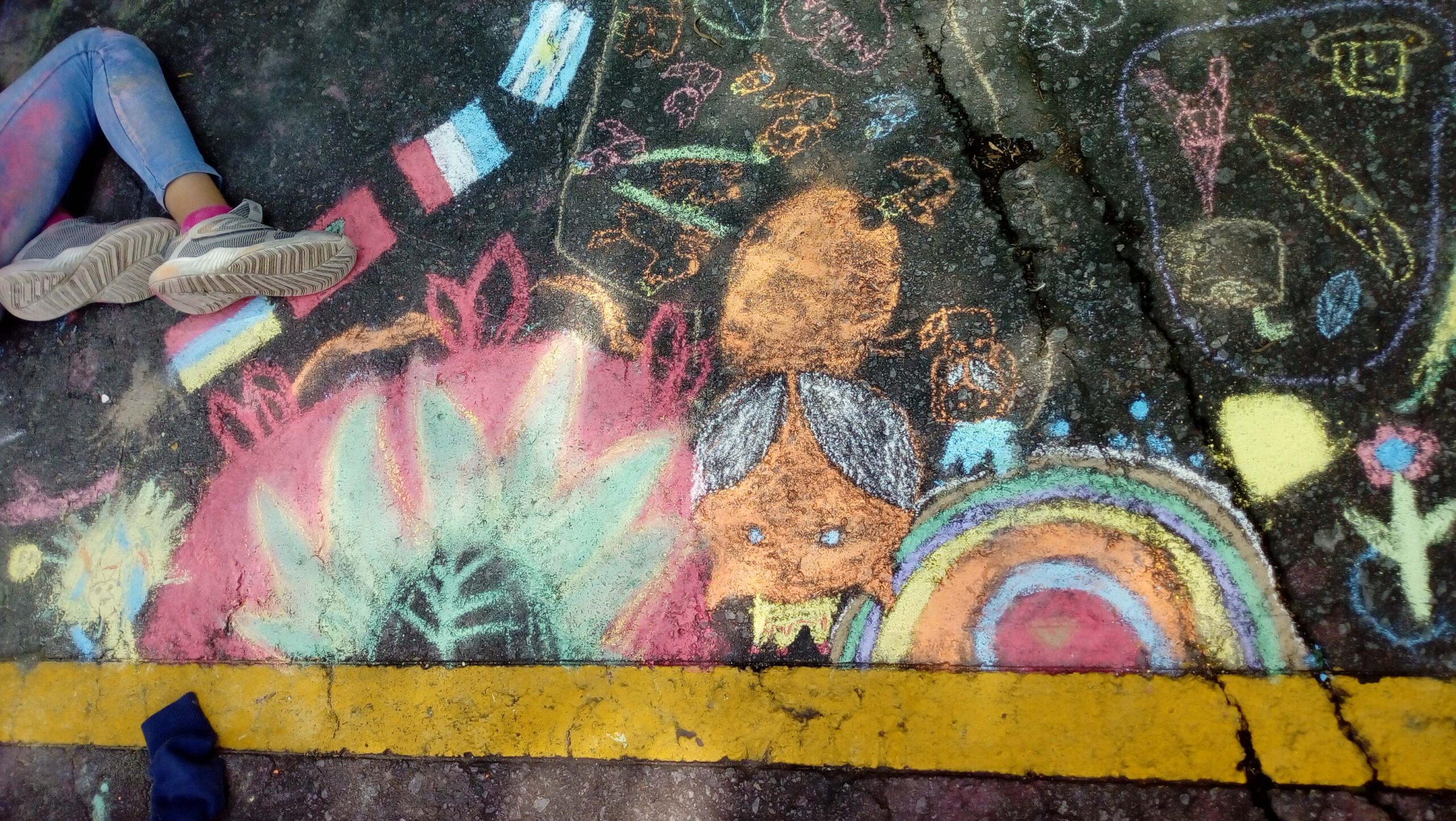 Sujet pour le primaire, tous niveaux. Ce projet d’établissement destiné aux classes de primaire a été initié par Luigi Brusa, référent culturel, inspiré par certaines villes colombiennes où, pour la fin de l’année civile, les habitants couvrent les rues d’immenses dessins à la craie. J’ai seulement participé à l’organisation mais c’est une idée qui mérite le détour.