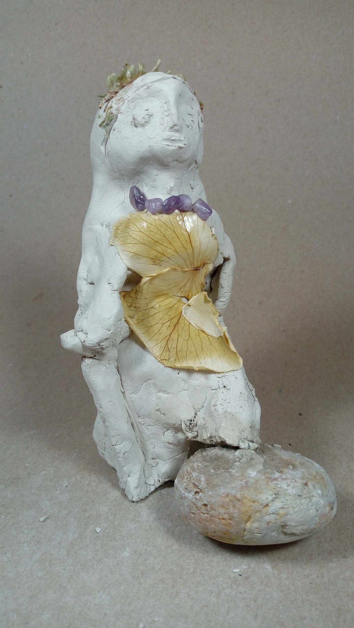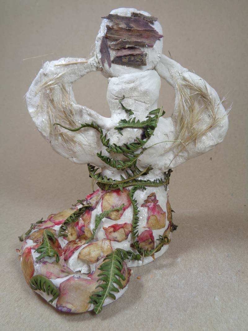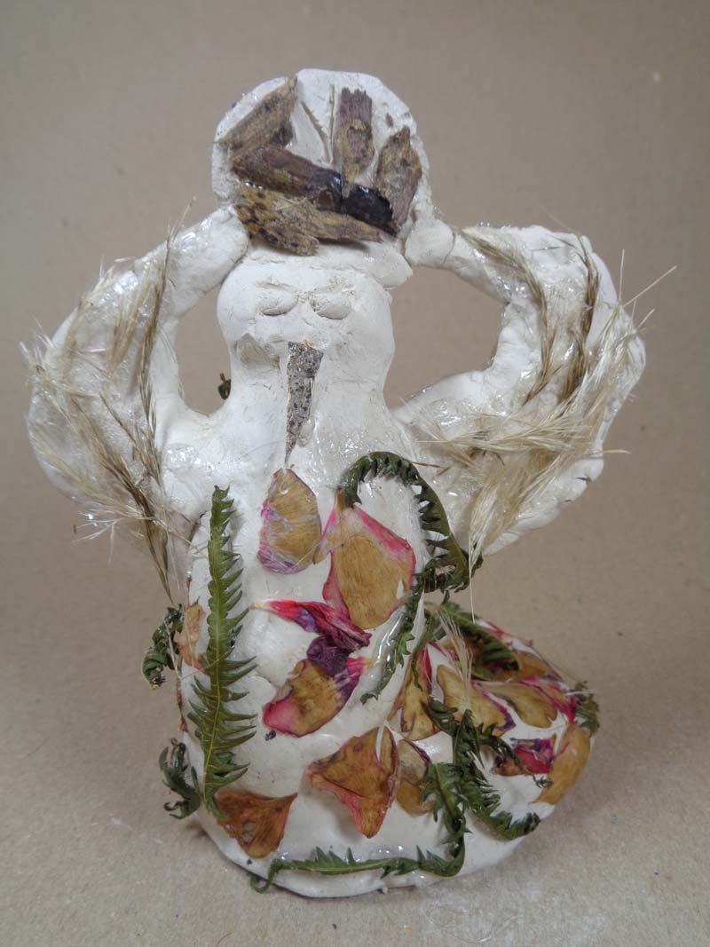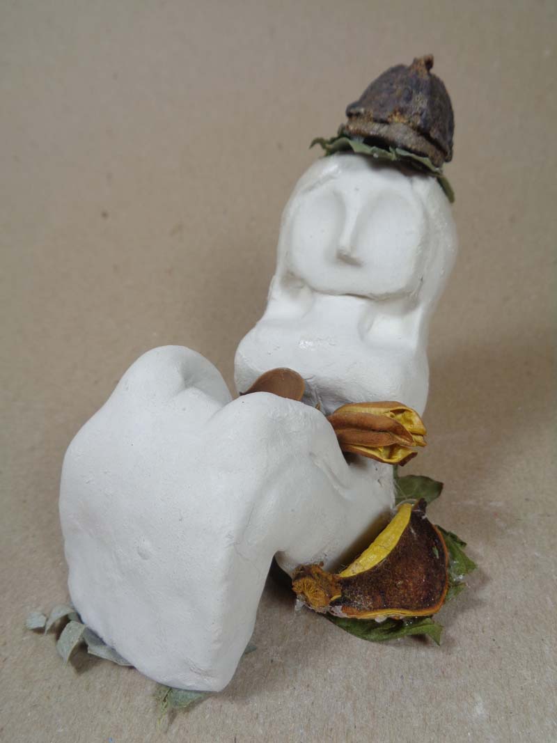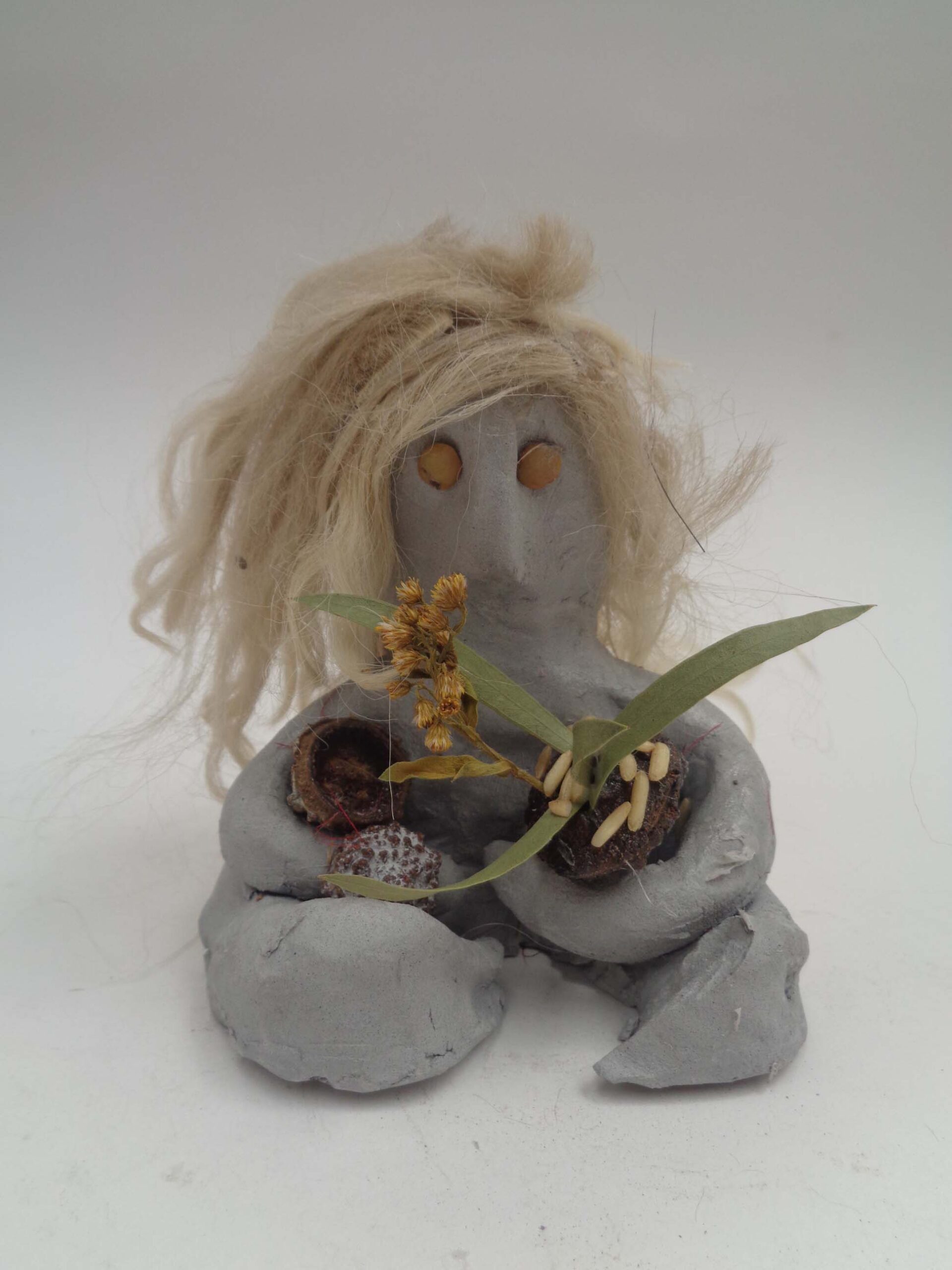 Travail en modelage avec ajouts de matériaux naturels. Inspiré par le livre d’Isabelle Simon « Petites déesses et petits dieux ». Niveau : 6ème.