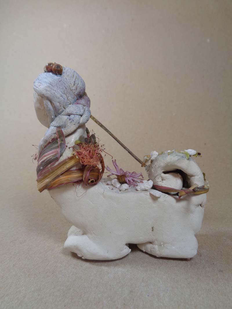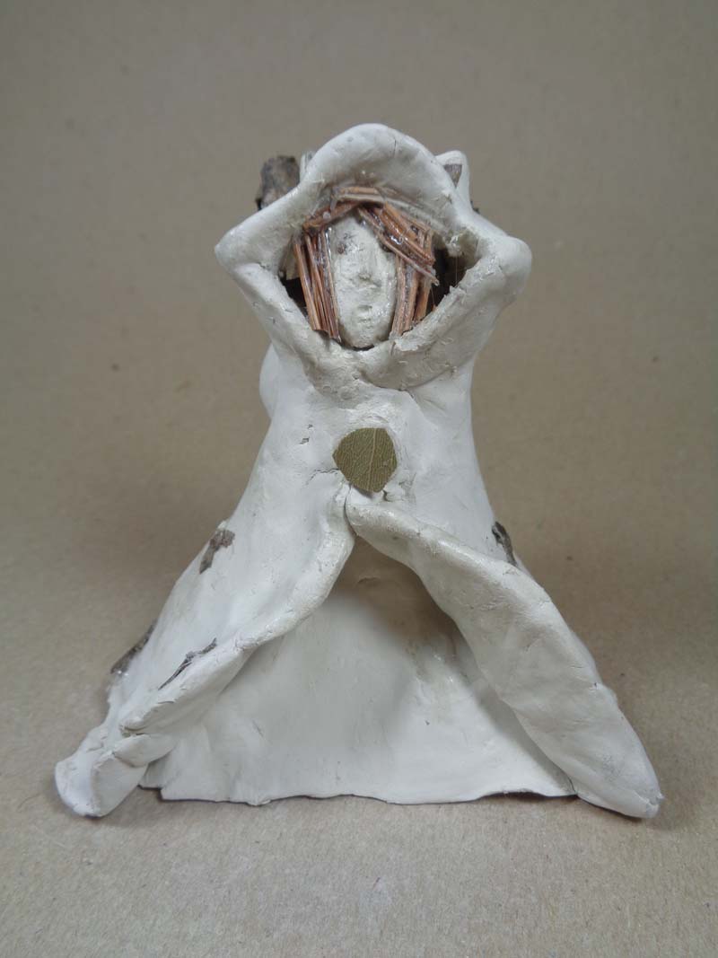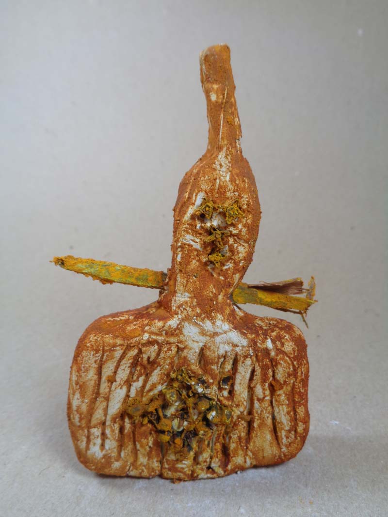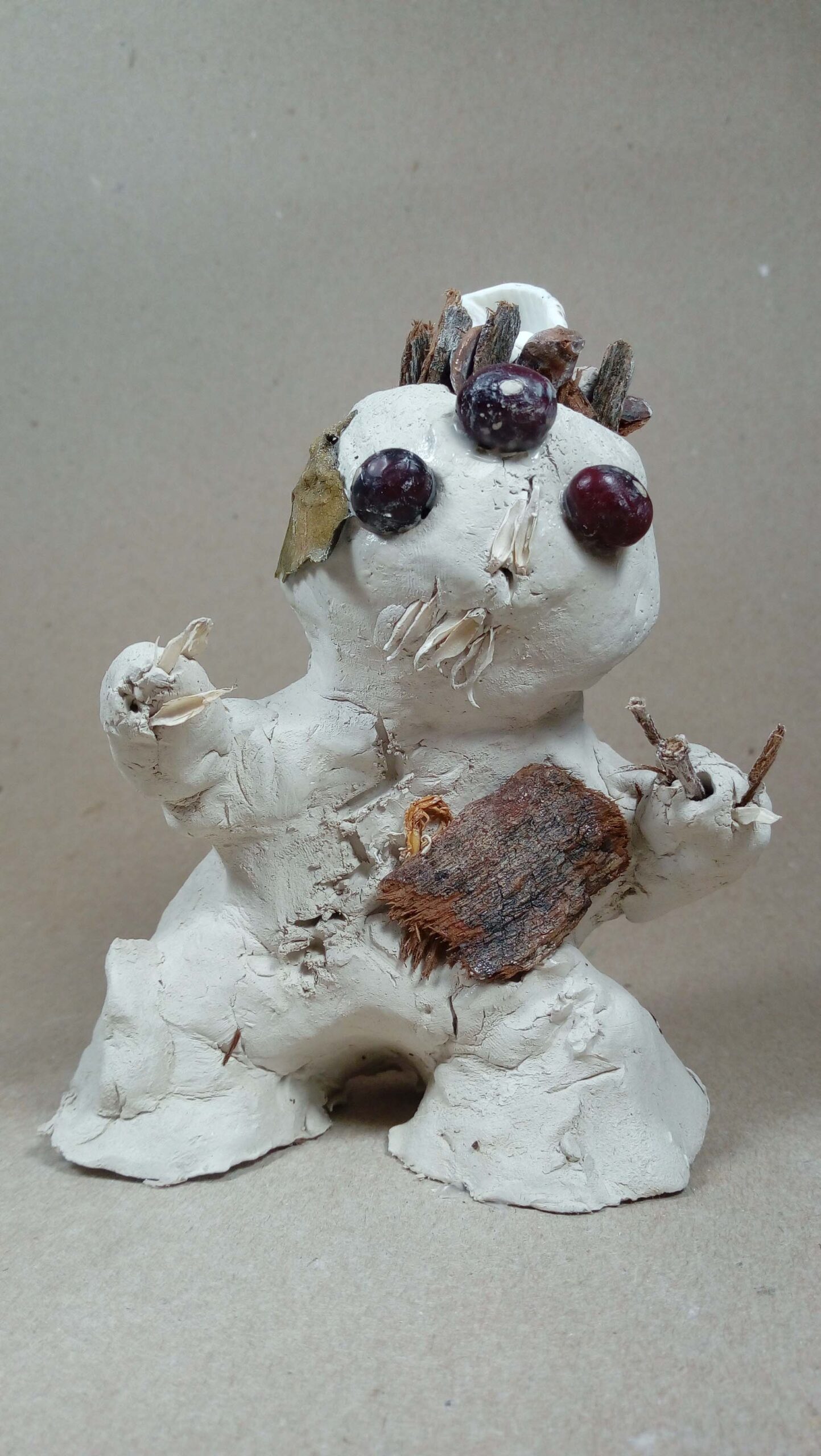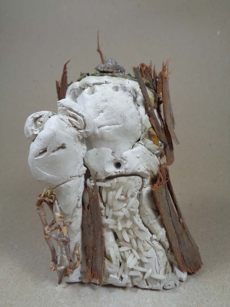 Travail en modelage avec ajouts de matériaux naturels. Inspiré par le livre d’Isabelle Simon « Petites déesses et petits dieux ». Niveau : 6ème.