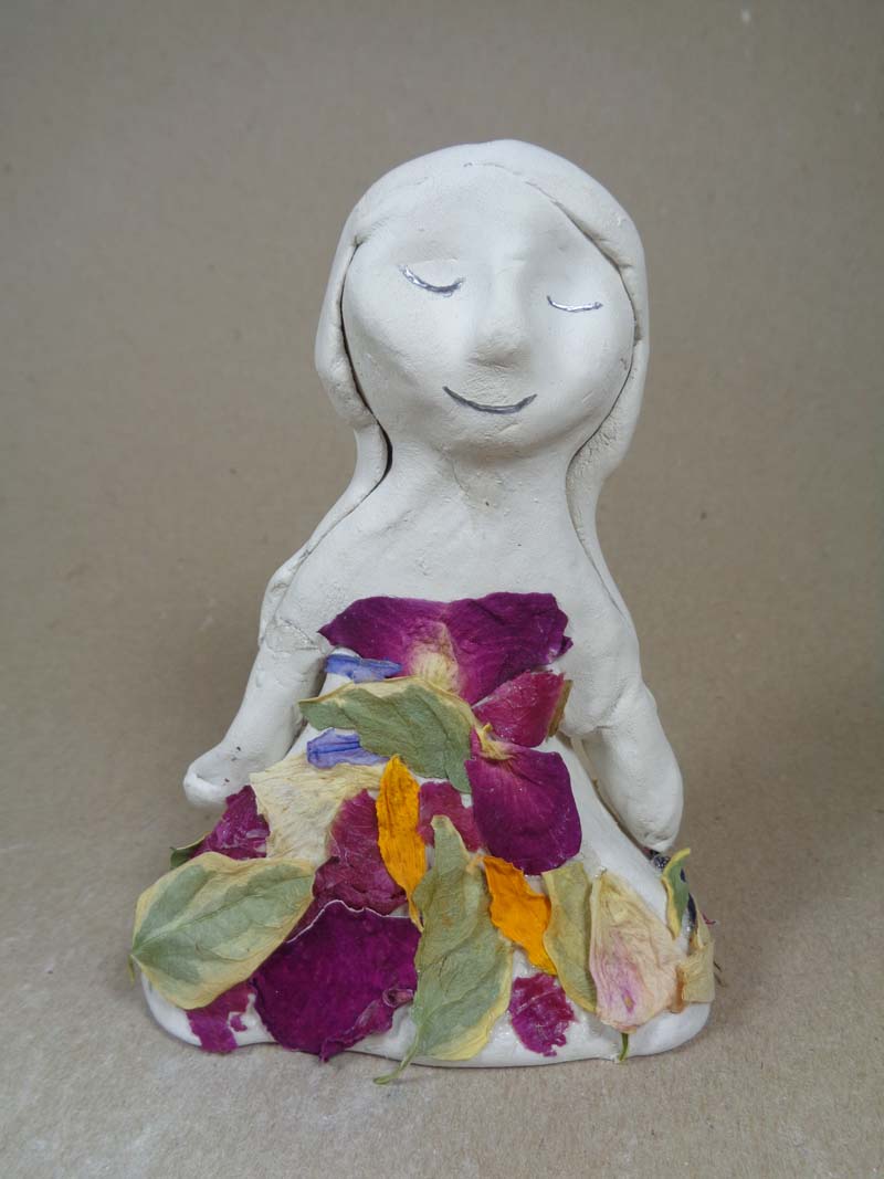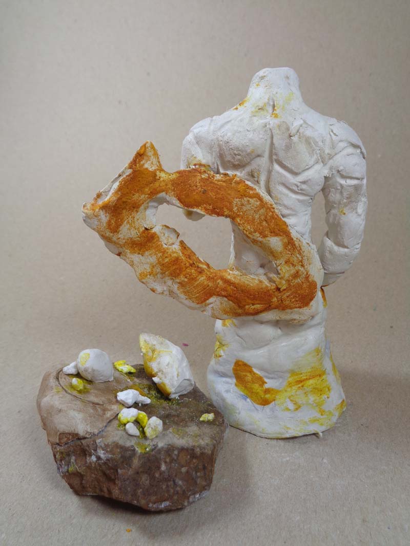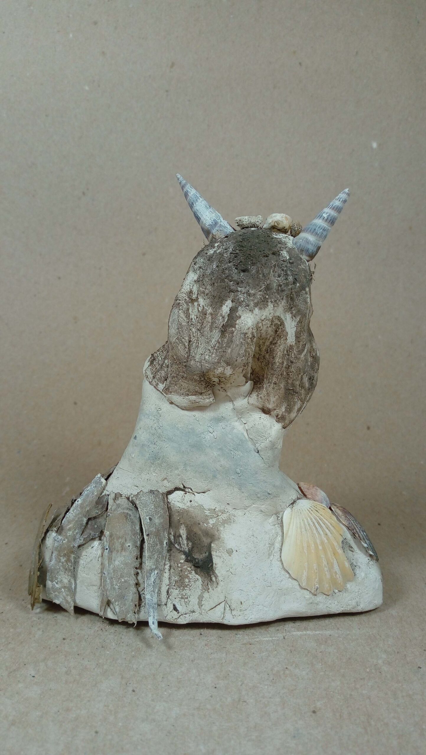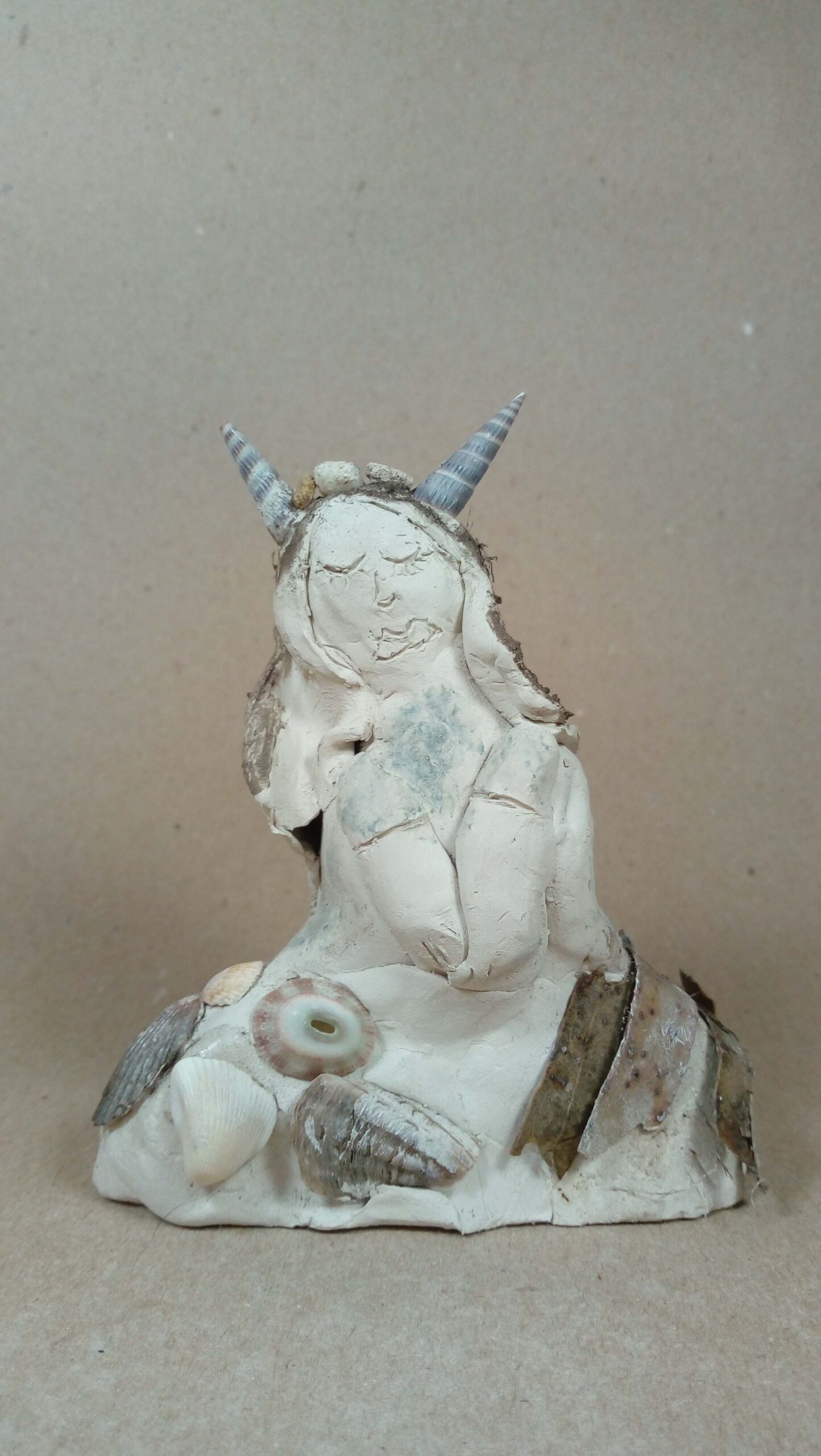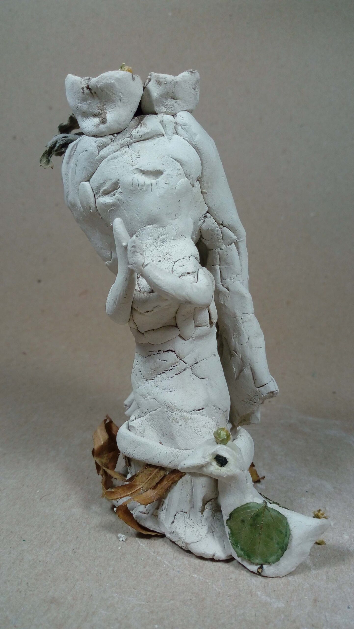 Travail en modelage avec ajouts de matériaux naturels. Inspiré par le livre d’Isabelle Simon « Petites déesses et petits dieux ». Niveau : 6ème.