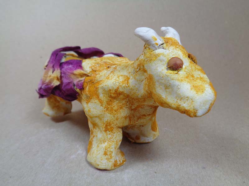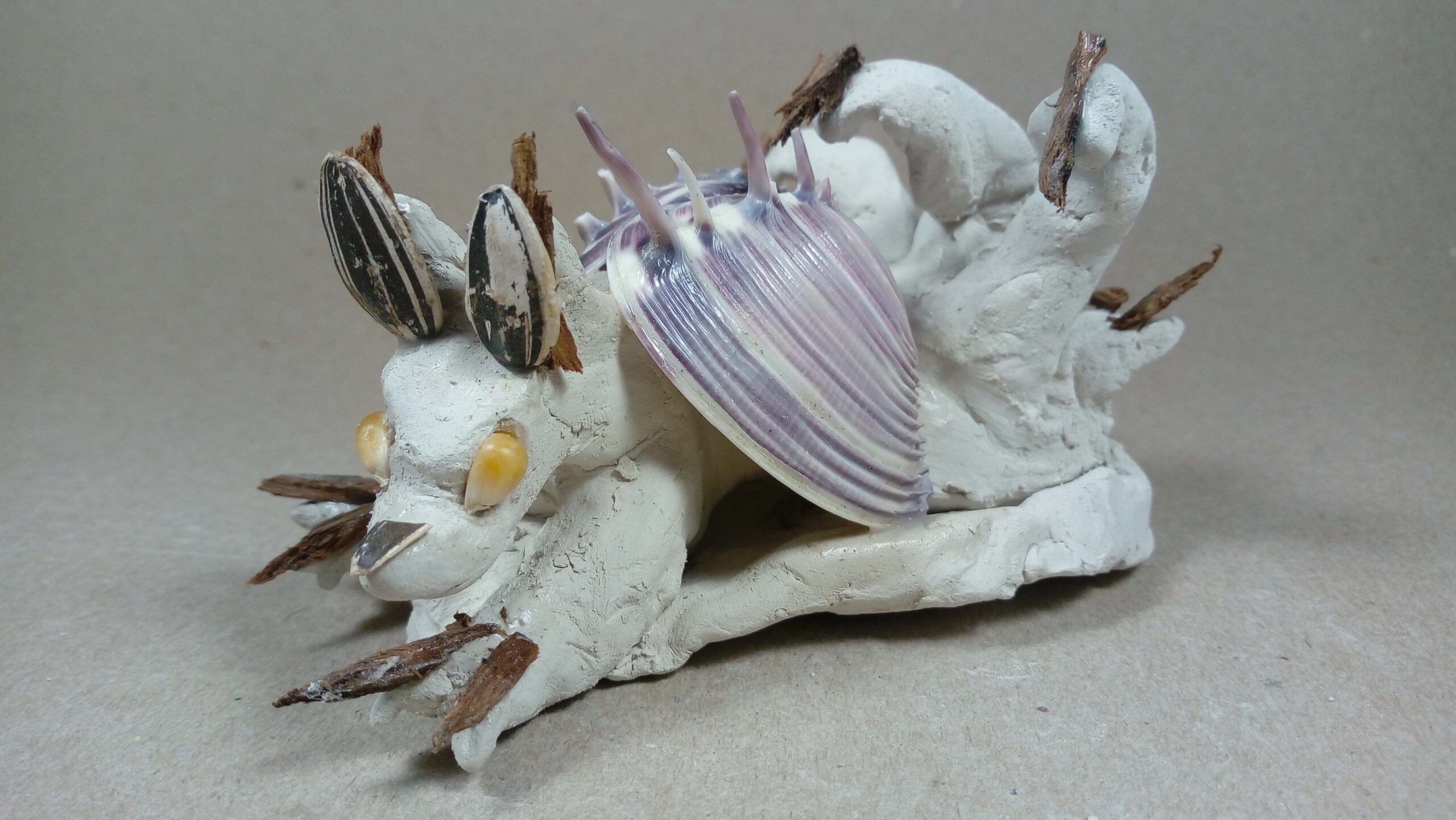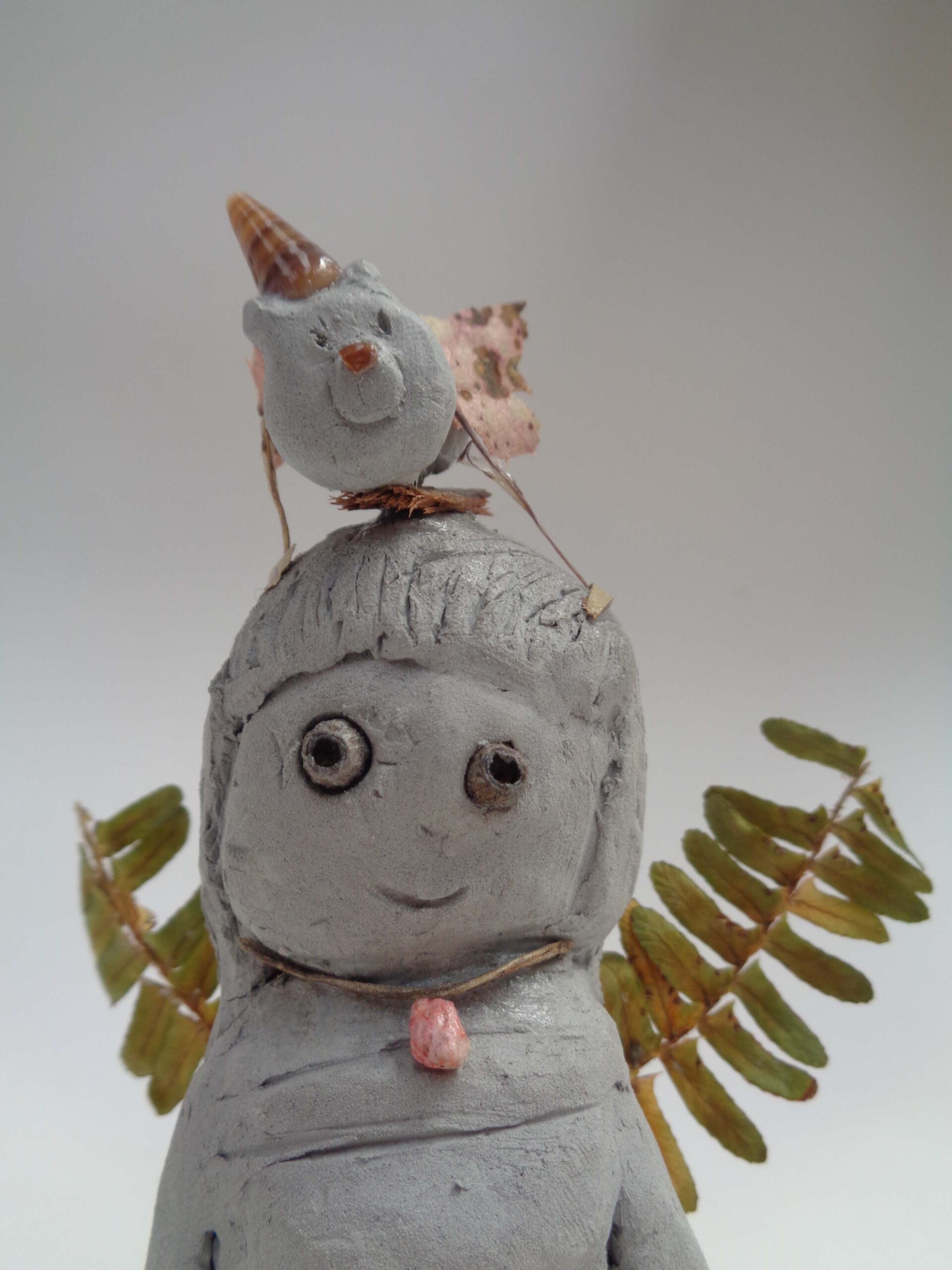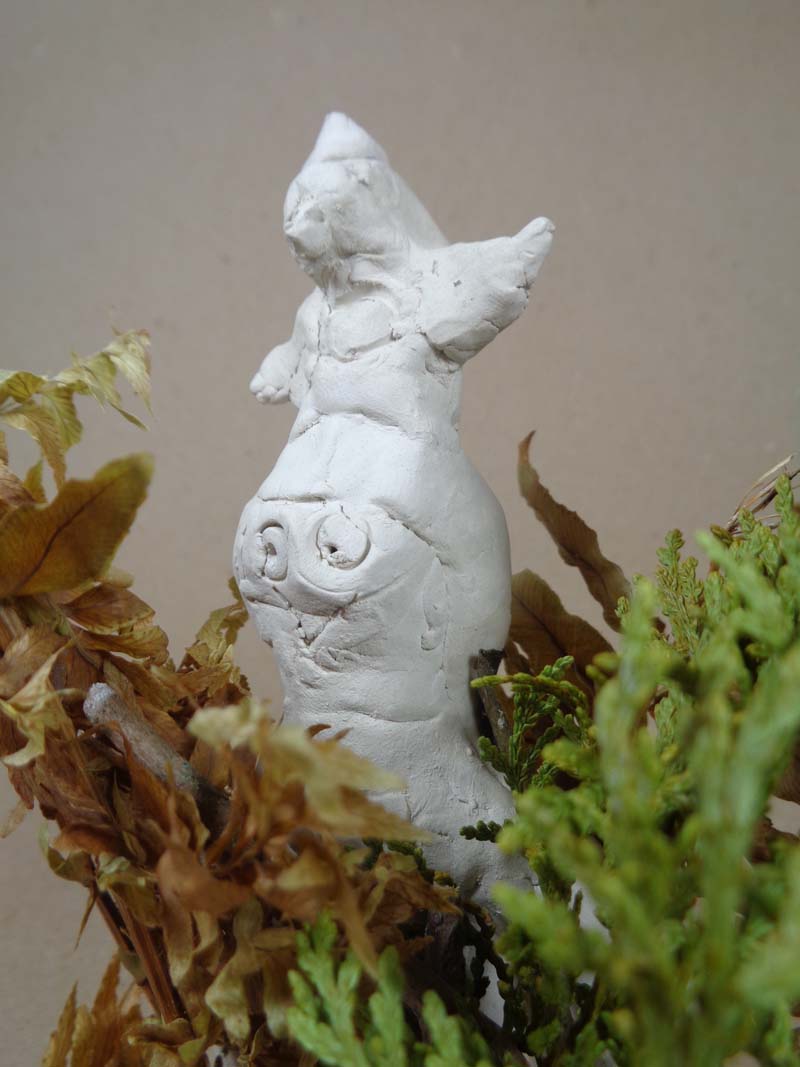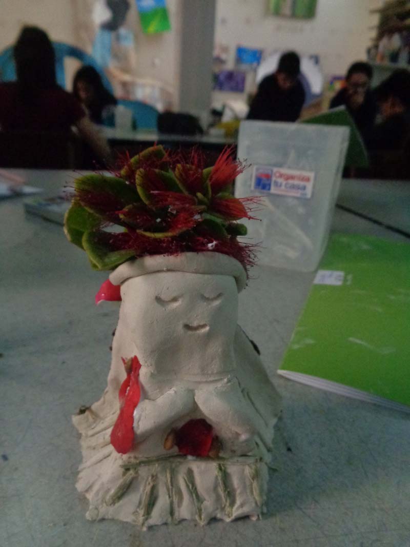 Travail en modelage avec ajouts de matériaux naturels. Inspiré par le livre d’Isabelle Simon « Petites déesses et petits dieux ». Niveau : 6ème.
